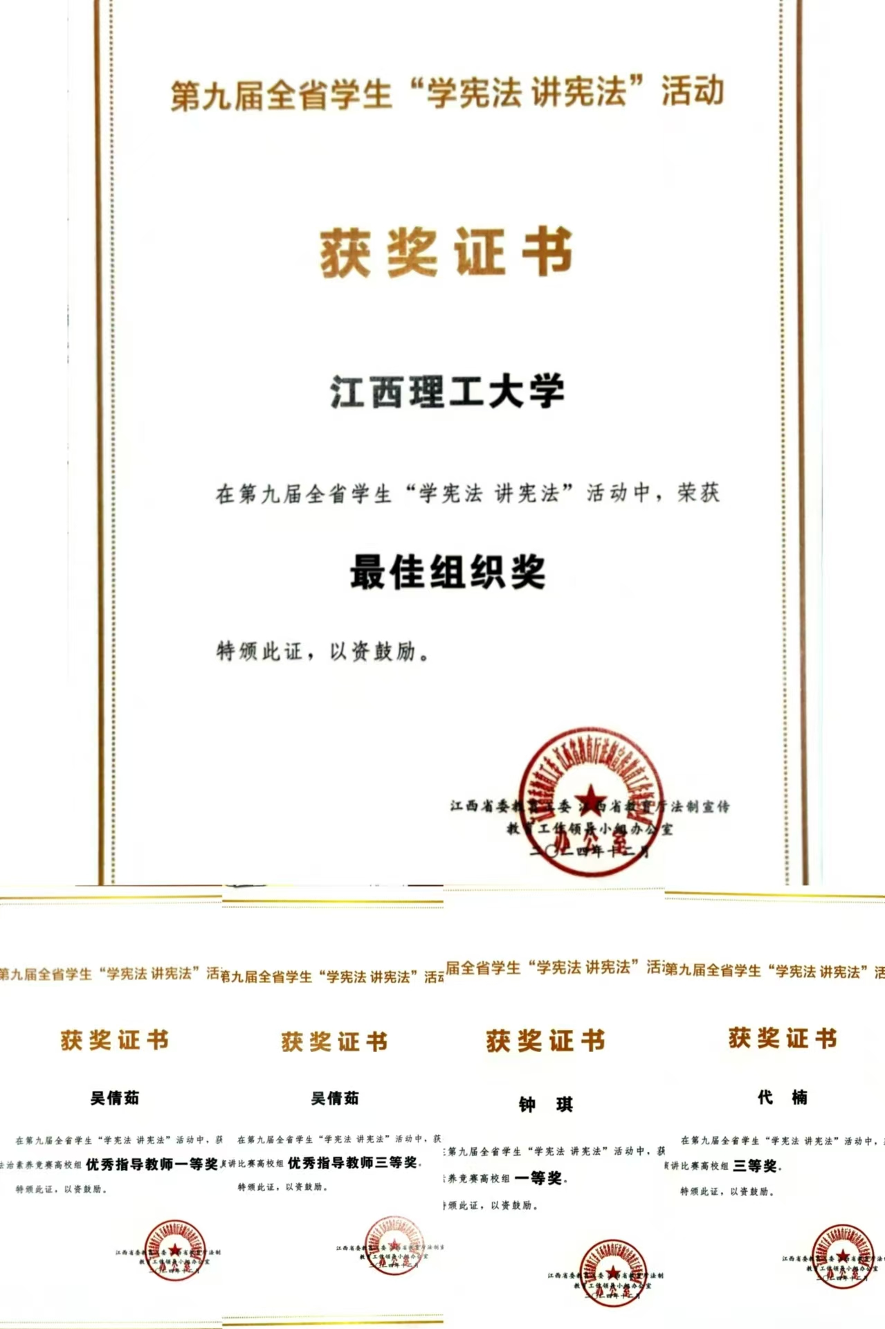 本网讯 近日,江西省委教育工委、江西省教育厅法制宣传工作领导小组办公室下发了《关于公布第九届全省学生“学宪法 讲宪法”活动获奖名单的通知》,木瓜视频 获评第九届全省学生“学宪法 讲宪法”活动最佳组织奖。同时,木瓜视频 木瓜视频 学子钟琪荣获法治素养竞赛一等奖、代楠荣获演讲比赛三等奖,木瓜视频 吴倩茹老师获优秀指导教师一等奖、三等奖各一项。