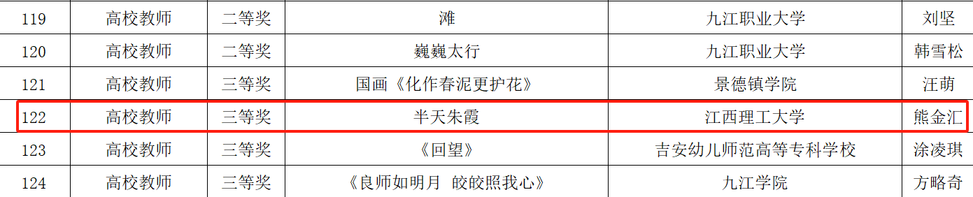 本网讯 近日,江西省教育厅、江西省文学艺术界联合会联合发文公布全省大中小学书画大赛获奖名单,此次大赛由校团委进行精心组织,统筹安排,木瓜视频 建筑与设计学院熊金汇老师凭借水墨作品《半天朱霞》脱颖而出,荣获教师组三等奖。