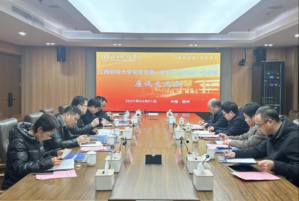 本网讯 4月1日,江西财经大学党委常委、副校长谢花林一行来校调研交流。校党委常委、副校长熊志华会见谢花林一行,并进行了座谈。学校技术转移转化中心、科学技术处等相关部门负责人及相关工作人员参加会议。