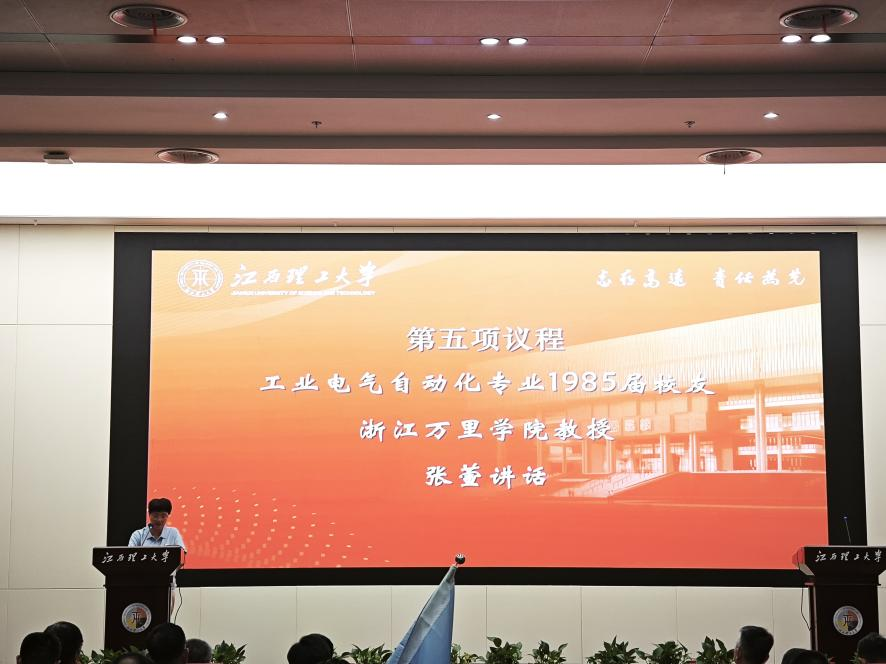 工业电气自动化专业1985届校友、浙江万里学院教授张萱讲述了在母校求学的青春岁月,表达了对恩师的感激之情和对同学情谊的珍视。她表示,“志存高远”是母校教给我们的人生起点,“责任为先”是母校刻在我们骨子里的人生准则,作为江理学子会时刻关注着母校发展,永远以母校为荣。