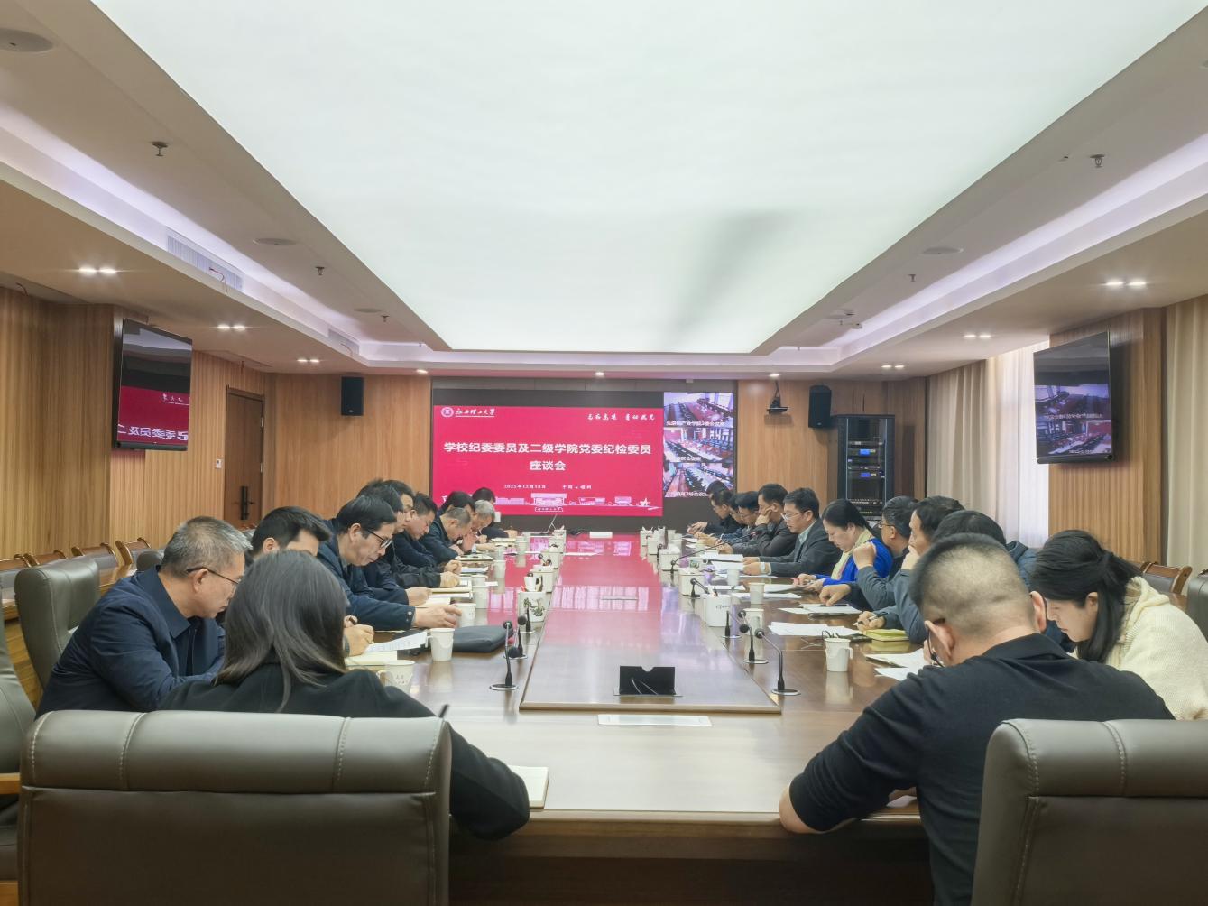 本网讯 12月18日,木瓜视频 在濂溪楼三楼2号会议室召开纪委委员、二级党委纪检委员座谈会。校党委常委、纪委书记、监察专员刘飞主持会议并讲话。学校纪委委员、各二级党委纪检委员参加会议。